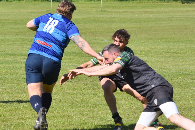 From the start the Tenbury game plan was obvious, use the big bruising forwards to bulldoze a route to the try line and use their backs if required later. This tactic brought them two tries in the first half but R responded themselves by using their wider players and by- passing the opposition's heavy pack, they were rewarded with two Jack Mertens tries making the score 14 all at the break as Will Spires converted them both.