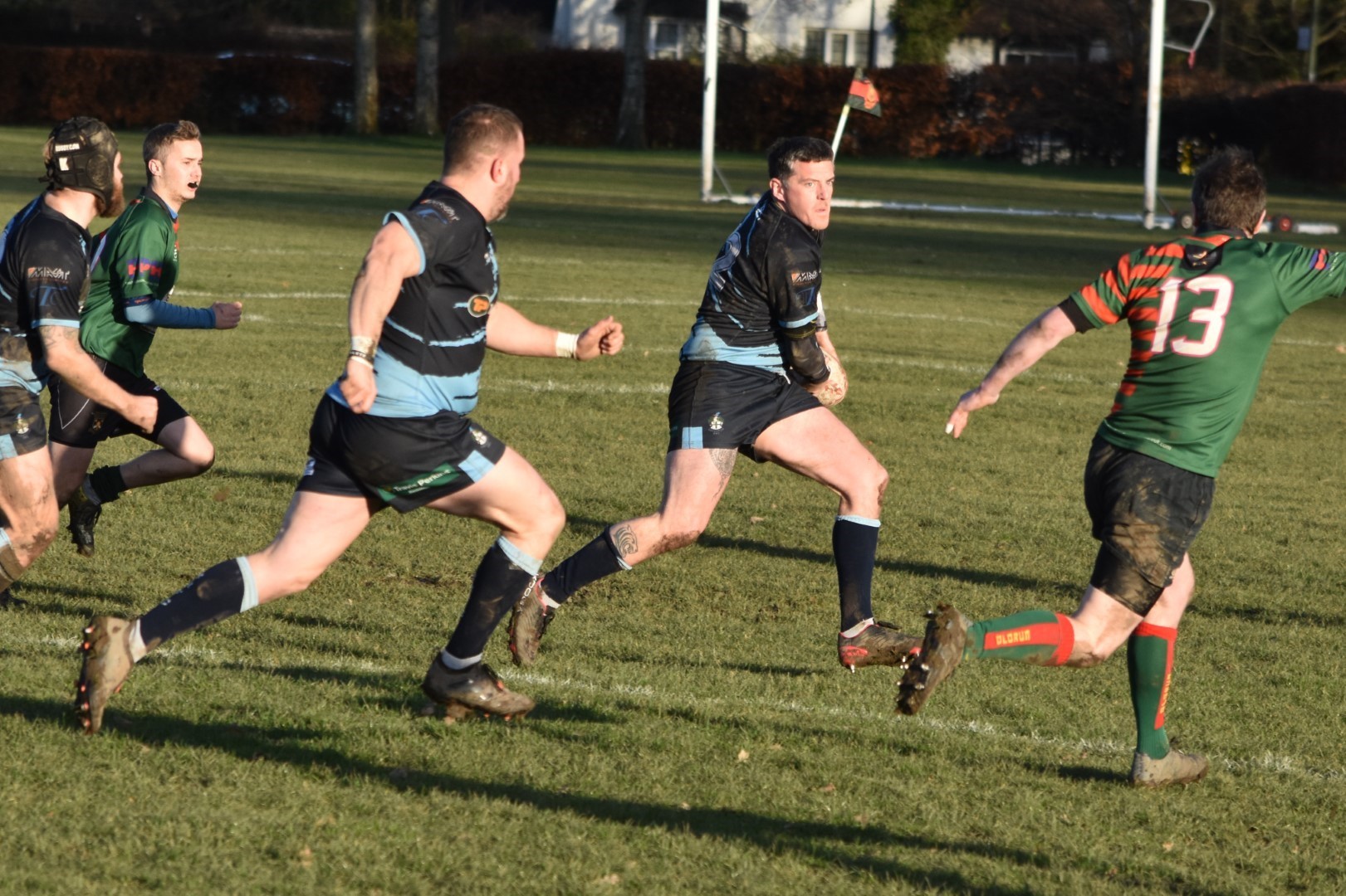 Replacement Will Heath was the beneficiary of the next attacking move. a forward drive, a ball spun down the line to him at outside centre and a dive to the line. Saddington found himself in an ocean of space with half the pitch to go and no great determination to prevent him scoring the seventh. Within a minute he had scored his hat trick try linking up with a move down the left wing.