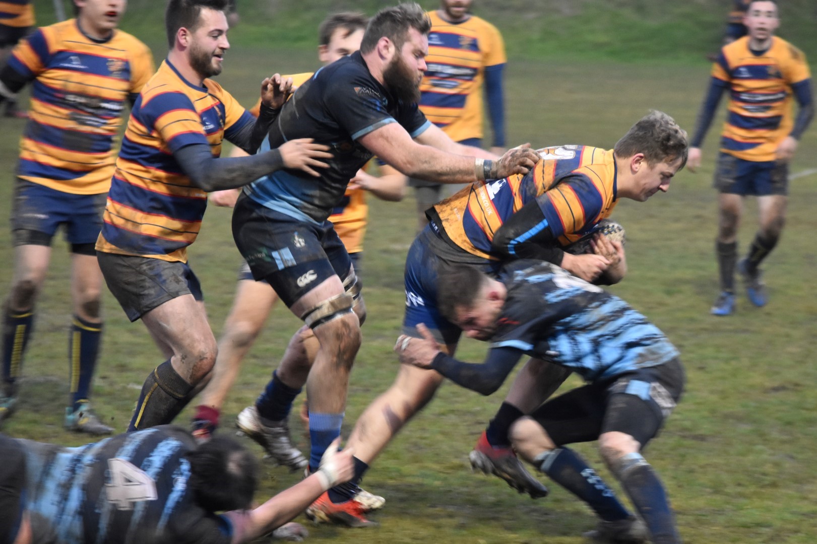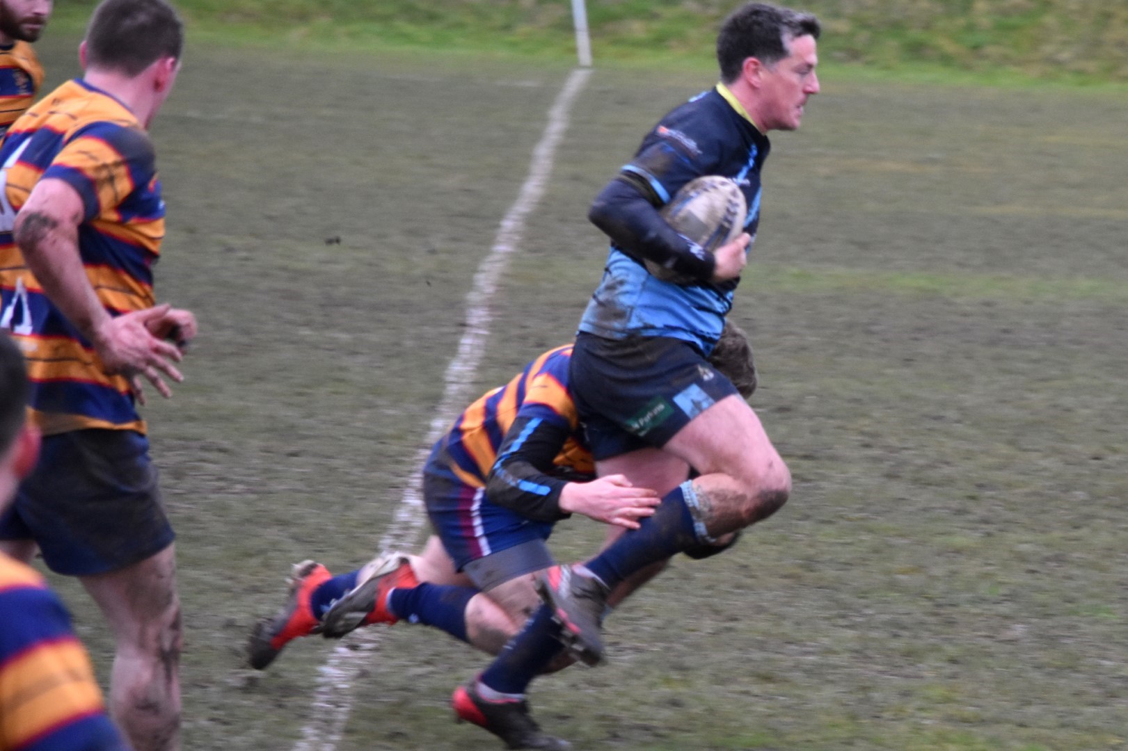 There were not many highlights in the first half, Chris Upton at lock had a storming run through the middle scattering tacklers in his wake, Tom Saddington probed and tested with runs and kicks, the scrum held its own solidly though with the breeze picking up the lineouts were a lottery. Redditch were frustrated by some decisions which spoiled their fluency but they coped well with all that was thrown at them and because of Five Way's inability to take any advantage from the wind the half closed with Redditch holding onto a 7-5 lead.