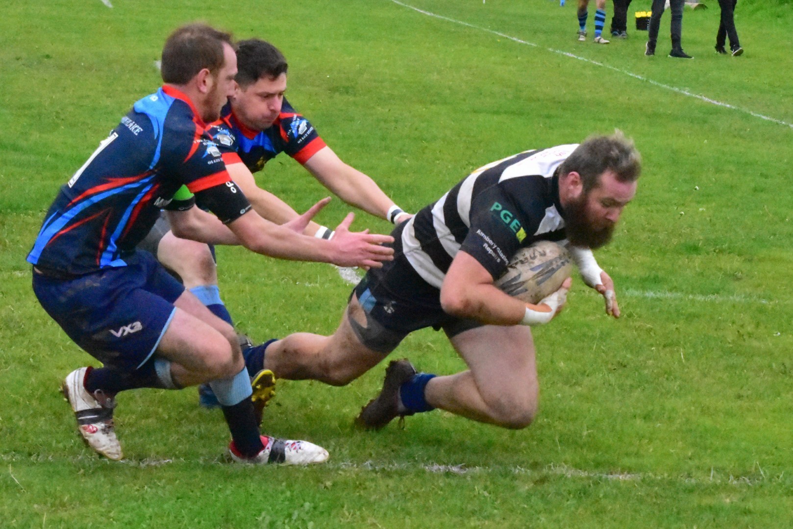 Captain Matt Allen complets the scoring despite the attentions of a tiring Greyhound defence.
