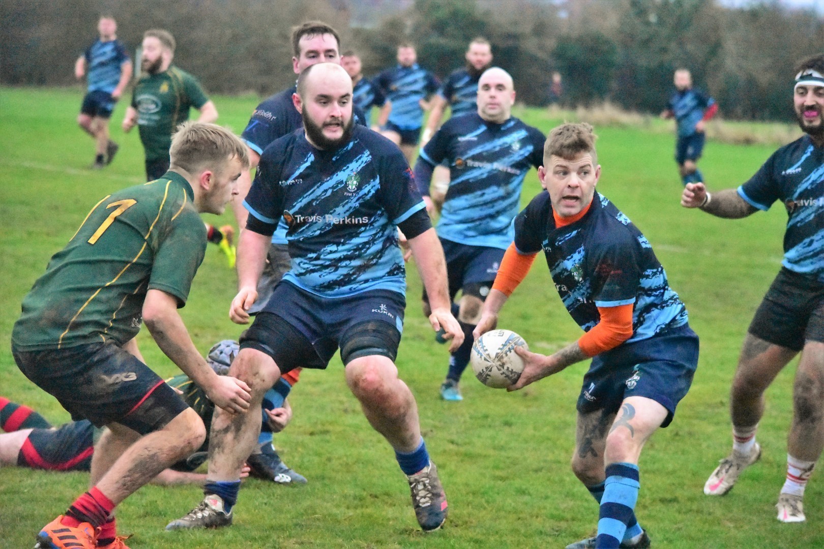 The half back pairing of James Mills and fly half Aaron Atkinson combined perfectly to start a clinical backline movement that saw the ball transferred sweetly from scrum to winger allowing Leo Fanthome to score the next try. Then continuing with the scrummage dominance, Stuart Brookes picked and drove forward from No 8 to round off the first half scores, 29-0 and try bonus point in the bag.