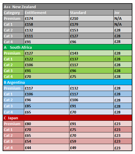 For Argentina and Japan we may purchase as many tickets as we require, at the Entitlement Rate. subject to availability. For New Zealand and South Africa we are limited to the club's allocation of Entitlement Rate Tickets.
