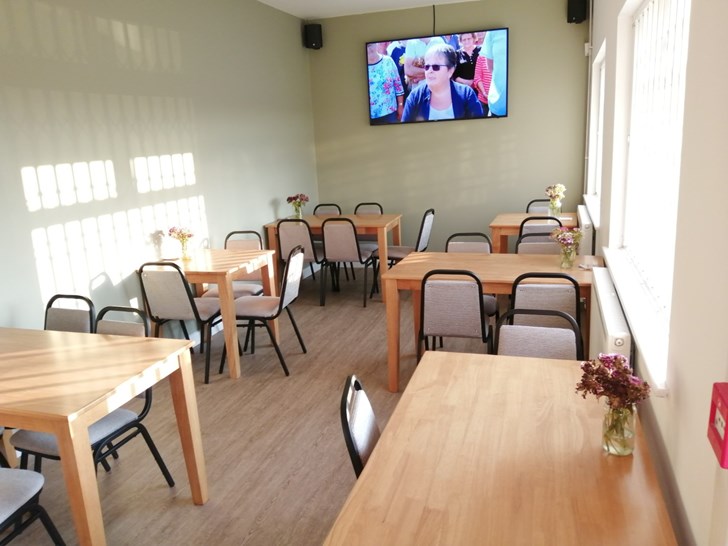 The picture shows the new large TV in the area which used to be the Committee Room.