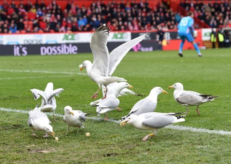 The pigeons and the seagulls took over the pitch with the seagulls, better suited to the conditions, running out easy winners, by 31 points to 7.