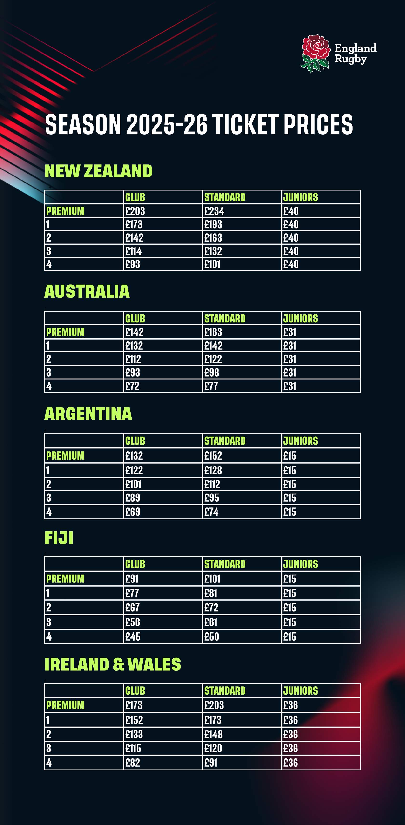 There is likely to be no restriction on Fiji tickets. All other matches are likely to have a restricted allocation.Once the tickets become available Steve will confirm requirements and hold a ballot if necessary. The best tickets go quickly once released so, for the best seats, let Steve know your requirement ASAP.